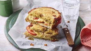 Sandwich de Mozzarella, pesto y tomate